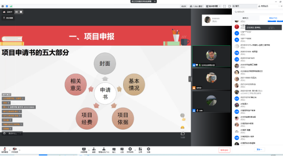 老员工创新创业训练计划项目是以员工为主体、以项目为载体的创新创业活动,张祥钦老师讲座围绕创新创业训练计划项目简介、如何撰写大创申报书,以及大创项目三类项目的区别等部分展开,特别是在项目申报书撰写中,注意选题要聚焦、挖掘问题要深刻、数据图文有来源、研究内容有高度、技术路线扣问题、突出特色与创新、预期成果要量化。鼓励师生要把创新与个人成长结合,与专业特长结合,与科技创新结合,希望师生在人工智能、新材料、新能源、城乡治理等方面动脑,寻找切入点,并利用公司搭建的平台,积极申报大创项目。